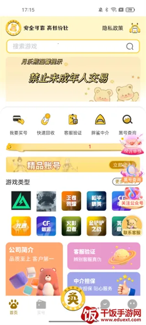 月乐熊2025官方最新版本是专业游戏账号交易平台,支持MOBARPGFPS等热门游戏账号交易。有三重安全保障、VIP专属服务等特色,可自动生成合理报价。支持多交易模式,提现0手续费,还有客服解决问题。