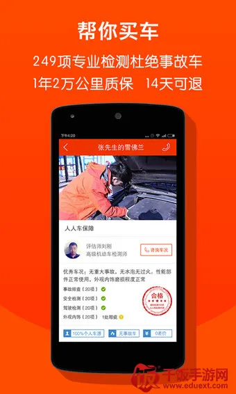 人人车二手车APP是专注二手车直卖的平台,连接买卖双方,无差价交易。有专业评估师免费上门看车,每辆车经249项检测。提供1年或2万公里质保、14天无理由退车,还代办过户等手续。
