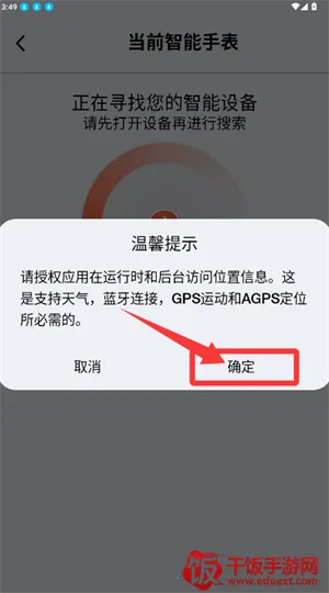 2、按提示授权位置访问,以继续设备查找流程。