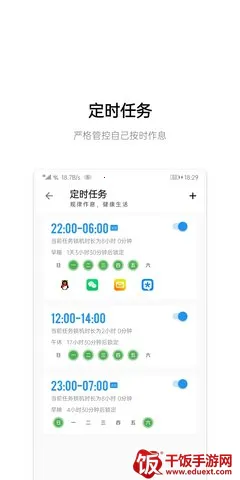 3、减少手机依赖:支持设置应用的使用管理,避免睡眠时间被娱乐应用干扰,帮助用户有效减少对手机的依赖。