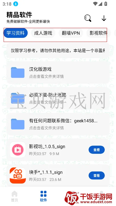 2、提供大量的软件资源分类,可以筛选喜欢的类型