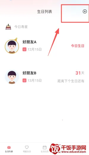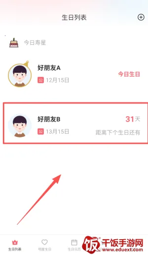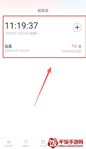 2、首页会自动显示所有已保存的生日,并根据时间远近进行排序,距离最近的会置顶显示。