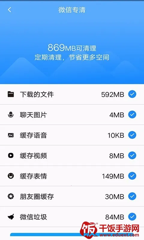 3. 设有微信QQ专清,专门针对两大常用软件清理图片视频缓存文件,清理更有针对性。
