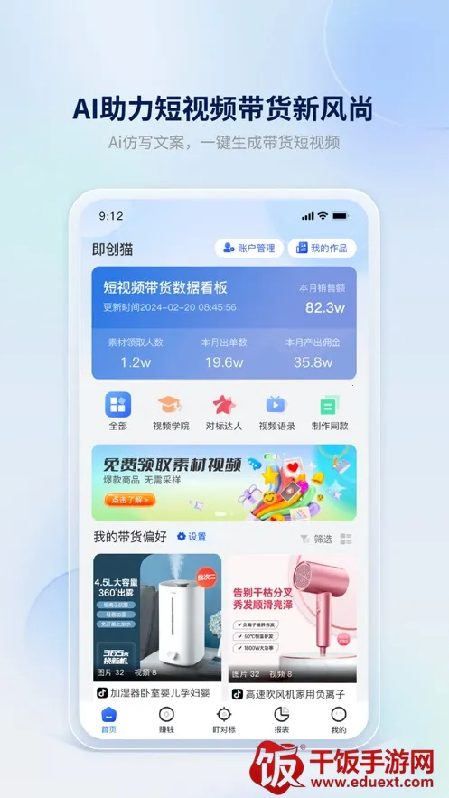 2. 全面数据分析:提供全面数据分析功能,助用户实时掌握账号状态、收益数据等关键信息,有力支持短视频营销。