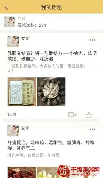 学术知识共享:可以随时在线发布各种中医帖子,通过发布帖子共享中医学术知识。