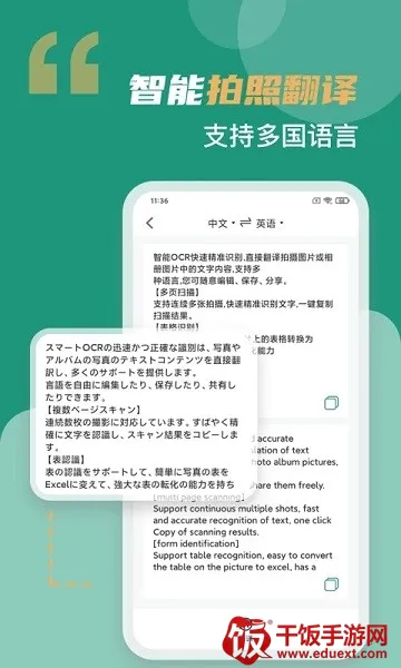 强大识别功能:支持中文、英语、日语、韩语、法语、德语等大多数语言的OCR识别,自动识别文档边界生成扫描件,多种文档色彩可供选择。