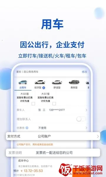 3. 支付灵活:支持公司账户及个人账户支付,月结预存让员工免垫资、免报销、免发票,透明合规又高效。月结服务涵盖多种差旅产品结算。