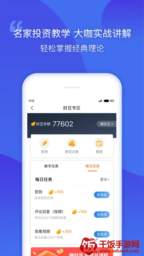 财学堂安卓版手机版核心特色突出,优势显著。**金融大咖亲临授课**,传授一线证券市场实战案例,让你收获宝贵经验。海量高清教学课程,覆盖多类型金融行业,助你完善投资理论体系。财社区可在线交股友、发话题问答,参与热议赢大奖。赚财豆功能,做任务领财豆,能免费换精品实战课程。它突破传统炒股模式,专注股票教学,从入门开始,助你成为炒股高手,实现轻松学投资,做合格投资者的目标。