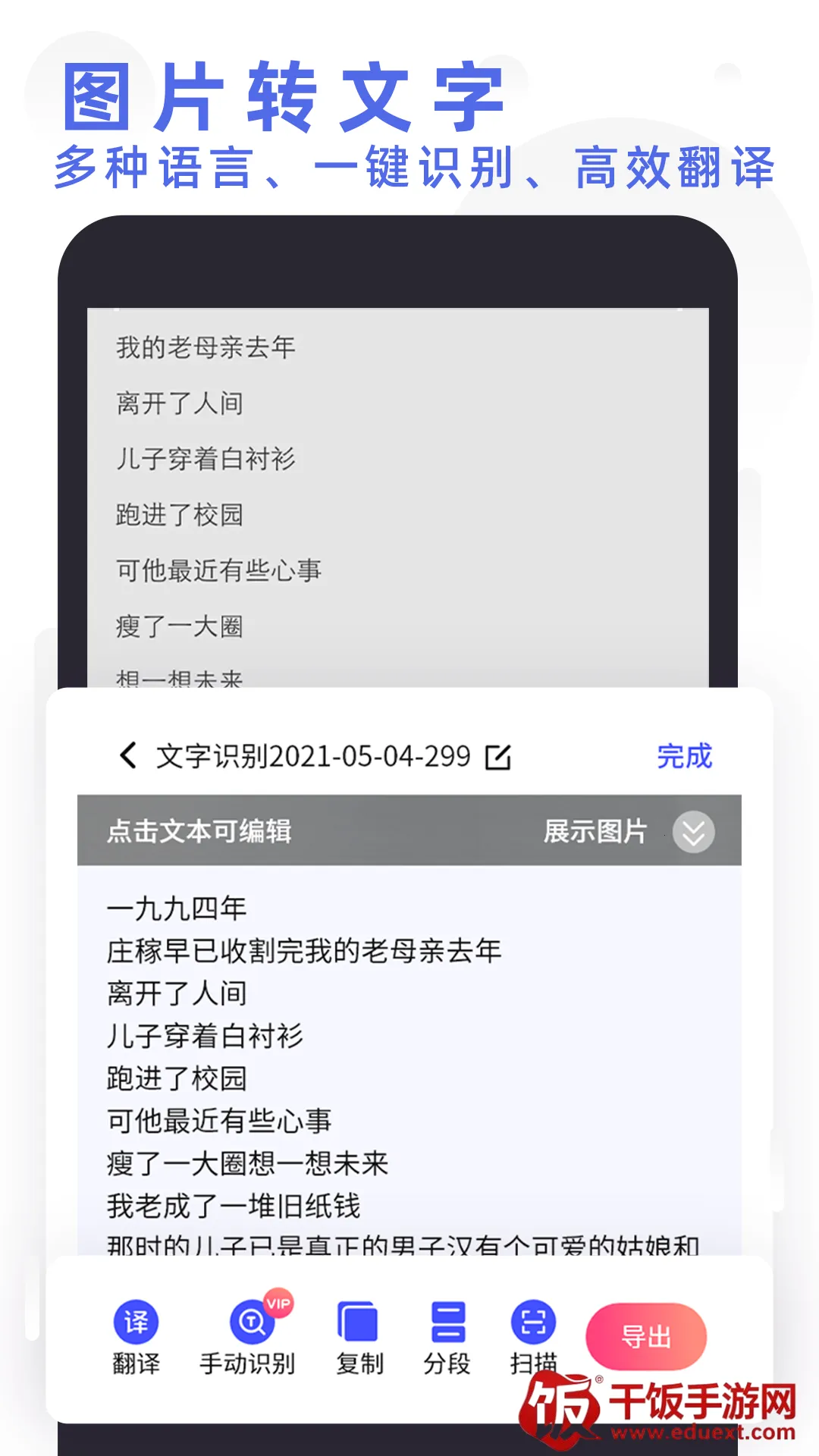 2. 文字识别广:强大的OCR文字识别技术,支持中文、英语、日语等多种语言文字的识别,可提取扫描文件中的文字。