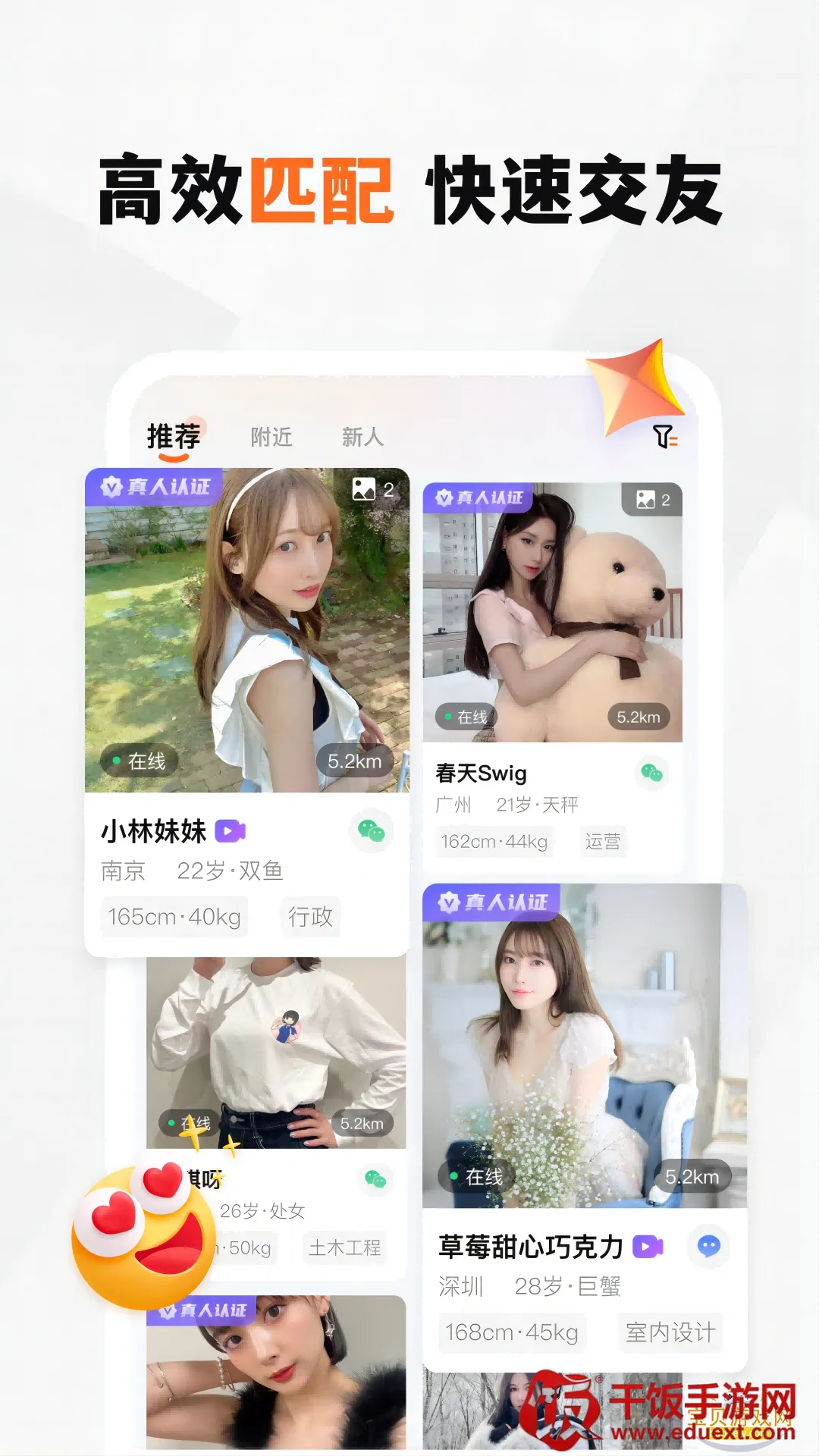 4. 精准推荐:定制专属交友标准,符合条件的异性任你挑选,聊得开心直接约,不再担心约到不合适的人。