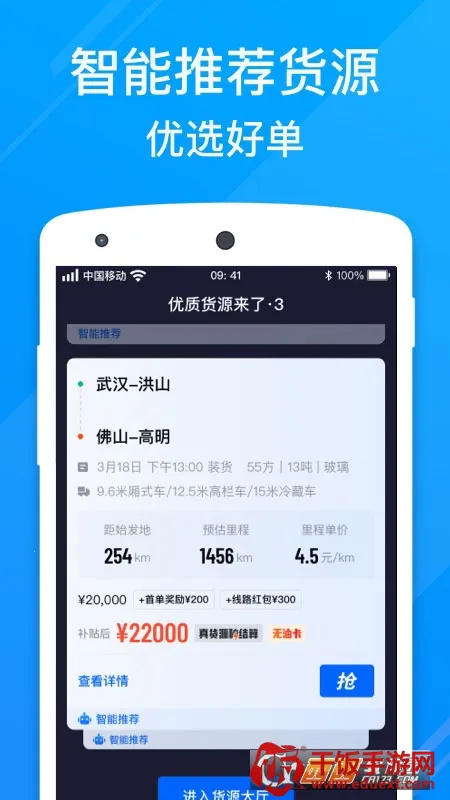 福佑卡车司机版是一款超棒的接单运货软件。它能帮卡车司机快速找到稳定货源,提高货运效率。有海量一手货源及时推送,司机可随时一键接单。通过智能化匹配系统,根据司机位置、车型偏好等信息,智能推荐合适货源,减少空载和等待时间,增加收入。运费有保障,实行T0结算,货物安全交付后平台马上结算运费。还能全程可视化查看货物运输状态,包括装货、运输和卸货等环节。