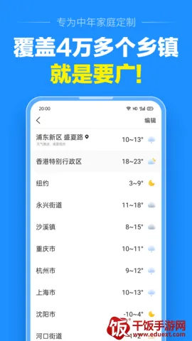 3、贴心设计优:专为中年家庭定制大字版天气预报;自动搜索所在城市推送内容;无广告打扰,界面干净,能实时了解天气动态。