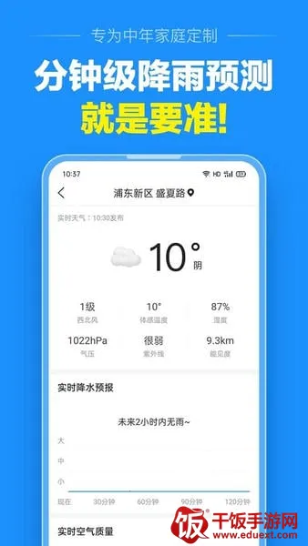 如果你想知道准点天气预报中精确到几点几分下雨,那准点天气这款软件绝对能满足你!它可是超实用的天气预报软件。能精准呈现实时天气状况,让你清楚了解近期天气。厉害的是能预测长达40天的天气,帮你合理安排出行计划。它具备分钟级的降雨预测能力,能提前告知你几点几分会下雨,方便你提前准备雨具,出行无忧。还能实时检测展示空气质量情况,让你随时掌握空气状况并做出相应防护。你可以在应用中添加多个关注的城市,随时查看这些城市天气。而且它根据用户需求提供个性化天气信息推送服务,设计了大字天气预报方便视力不佳用户查看。天气信息和空气质量数据经过严格校验且更新及时,确保准确无误。有了它,就能轻松掌握天气变化,让生活更方便。