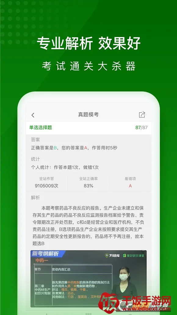 执业药师万题库是一款超棒的学习软件!它能帮你顺利通过药师考试。这里题库超丰富,有各科目章节练习题、历年真题,免费任你刷。刷题效果不好也不怕,能在线看各大名师的免费视频直播课。它涵盖药事管理与法规、药学专业知识一、药学专业知识二、中药学专业知识一、中药学专业知识二、中药学综合知识与技能等科目。有新大纲模考大赛,依据官方标准出题,仿真机考系统,高效查漏补缺。还有每日打卡,5分钟5道题,专题专练,提分明显。学习计划能根据你的学习强度制定专属练习计划。考试快讯会及时推送报名、准考证打印考试查分领证等重要信息。有专业老师讲解,能把复杂知识点串联,方便记忆。无论你基础如何,都能在这里轻松学习,高效备考,真的很不错!