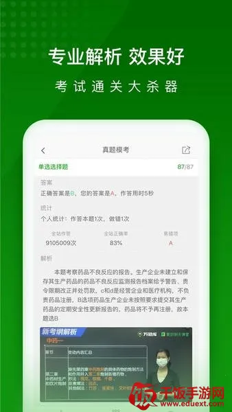 这里拥有丰富的题库,包含历年真题、模拟题、考点章节练习及高频考点等,上千万题库精准解析。免费视频学习功能也很实用,适用于全国执业药师资格证考试用户,还能离线下载。全天免费直播课由万题库大神讲师7X12小时轮循在线直播,完虐昂贵低质的传统线下机构和欺诈性培训班。此外,还有VIP助教督导伴读,真人客服实时在线,全天候解决用户问题。众多考生使用后反馈,它对提高学习效率、通过考试帮助很大,是一款值得推荐的执业药师考试做题软件。