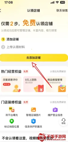 进入到认领店铺界面,点击“去添加店铺”,按照提示进行入驻。