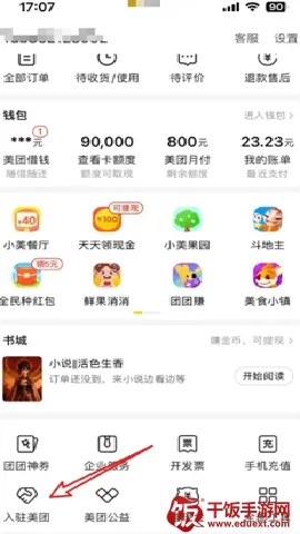进入到美团我的界面,点击“入驻美团”。