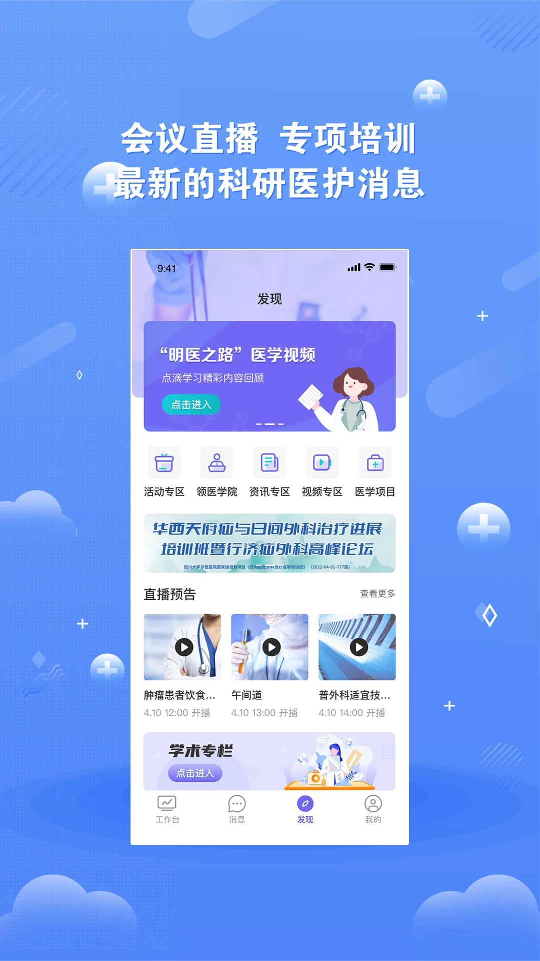 4、资讯会议丰富:提供前沿医讯和科普健康知识,让用户了解行业发展。还有线上报名线下参加的会议以及线上直播会议,方便医生学习更多医疗知识。