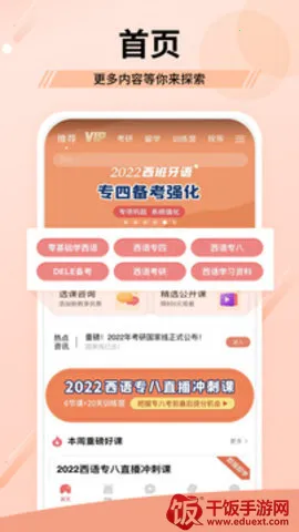 这平台注重个性化定制,能根据学生水平和需求智能推荐内容。有大量资深教师和专家提供优质教学资源、答疑解惑。学习工具多样,像在线作业、课程录播、互动问答等,让自主学习更高效。还支持在线实时互动,学生能与老师、同伴实时交流讨论,上课更有趣。而且它的题库、背单词软件和FM音频内容免费,课程收费,价格相对良心,在考试辅导培训方面通过率高,赢得众多西语专业生信任,能满足大家学外语和考证的需求。