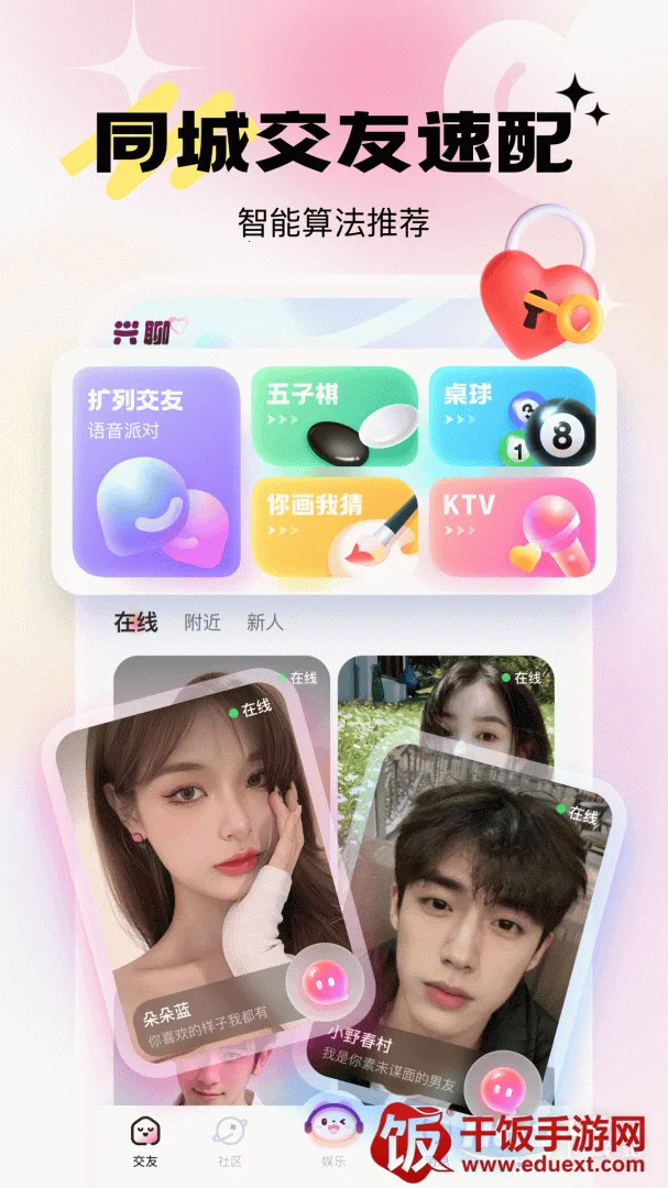 如果你想找一款社交软件,乖猪聊天交友能满足你的需求。它专为喜爱宠物和社交的用户打造。在这里,你可以和全球宠物爱好者实时聊天,分享宠物经历与心情,还能浏览、发布宠物照片视频,参与话题讨论,找附近宠物活动和社群。软件功能超丰富,有各种视频教程供你学习。语音互动在线派单、真人点歌、语音聊天室24小时在线,让你享受多样互动。用户经系统人工双重审核,确保真人真实,可放心一键畅聊。能在社区同城交友,展示才华。还提供热门电竞游戏陪玩等优质服务。邀请小伙伴注册成功有现金红包奖励。新版本全方位融入游戏约玩和视频语音互动,通过文字、语音、视频等多种方式,让你轻松结识志同道合的伙伴,告别无聊时光,享受交友乐趣。