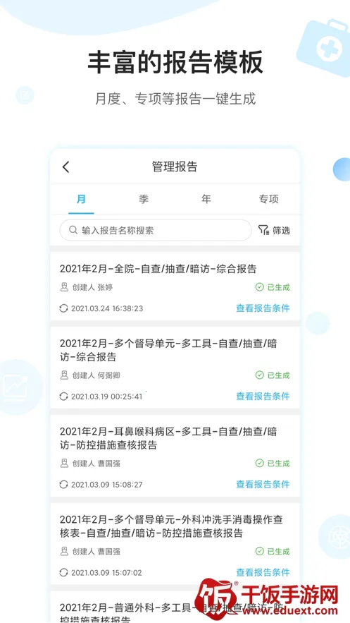 其优势显著,严格依循国家职业防护标准,智能检测医疗环境与操作环节,实时识别潜在隐患,为院感防控提供全周期保障。系统自动生成统计报表与图表分析,助管理者精准掌握感控工作进展,科学制定改进措施。还内置完整的医院感控督查指标库,可根据不同科室、不同类型医疗机构定制化管理。对于医疗机构来说,是一款非常实用的软件。