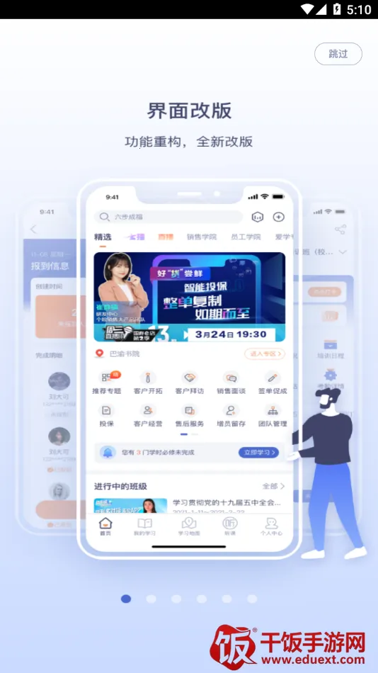 这里有保险专业知识、销售技巧、领导力等主题的短时微课程,支持直播实时互动及回放学习,满足碎片化学习需求。还针对新员工签约班学员等群体设置专属课程,包含合规培训、刷脸考勤、年度考核等流程,确保学习闭环。能实时记录课程完成度和历史学习轨迹,提供自主检查学习进度功能,助你规划学习计划。集成保单查询、交易记录、积分兑换等功能,支持实时管理客户数据,提升工作效率。有了易学堂,轻松解决学习需求,让学习更容易,随时随地畅享个性化学习体验。