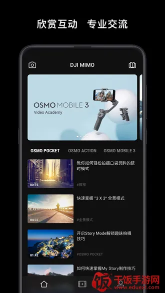 DJI Mimo是大疆推出的后台云控制软件,可操控云台拍摄精美照片视频,有一键优化画质、脸部追踪延时摄影等功能。支持多种分辨率,具智能剪辑、丰富特效滤镜及音乐库,操作界面直观,新手易上手。