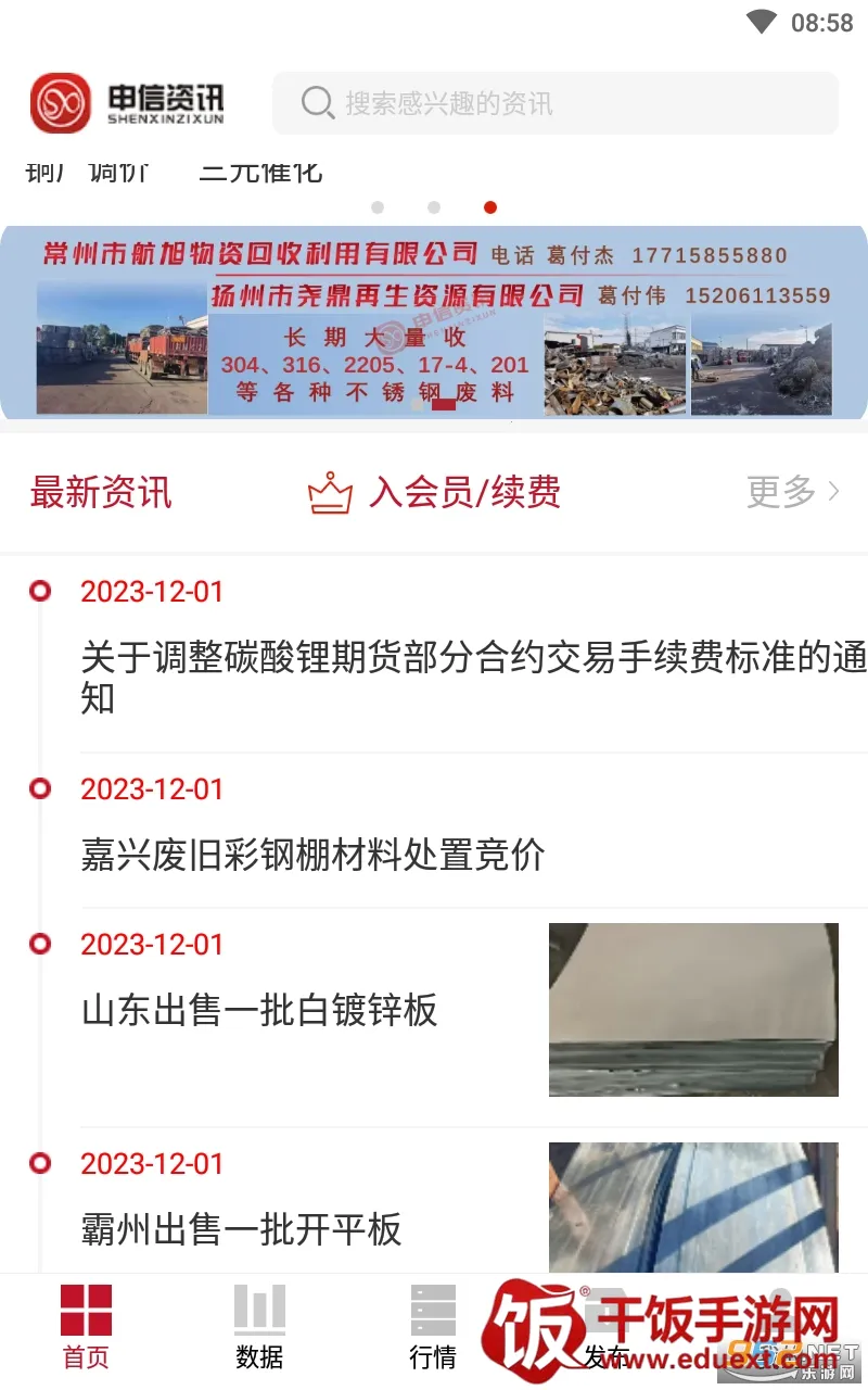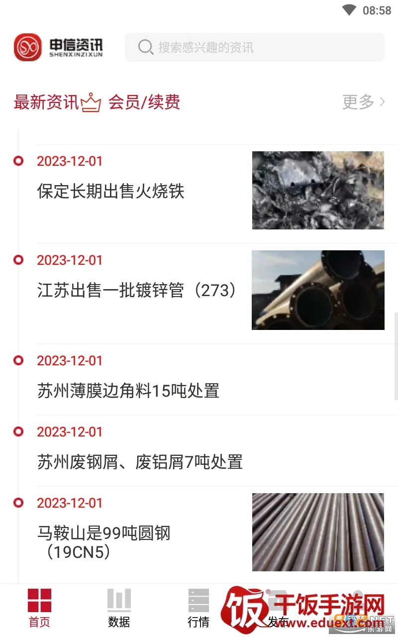 申信资讯能帮您解决了解行业资讯及价格的需求。它是一款超棒的软件,能为您呈现全面且实时的废钢与金属行业市场动态。在这里,您可以轻松查询行情、对比价格,还能跟踪各类资讯。能找到各种采购招标信息,让钢铁金属采购更轻松,投标也更快速。软件里有物资处理、招标拆迁、二手设备等丰富信息,还有钢厂调价、废钢基地等版块。特色功能众多,行情速览让您掌握行业风向,个性化订阅满足您的兴趣,智能比价助您明智购买,多平台覆盖随时随地可用。通过它,您能快速了解各种金属材料行情,支持比价,还能订阅不同信息版块及时接收动态推送。有了申信资讯,在废钢金属行业就能轻松运筹帷幄啦!
