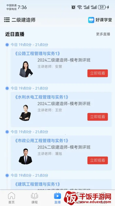 好课学堂是款极致好用的课堂学习 app,免费服务模式,有精选名师课程、视频直播授课,提供一对一答疑与模拟考试。涵盖多领域课程,有丰富学习资料,能满足不同人群学习需求,助用户轻松掌握考试重点。