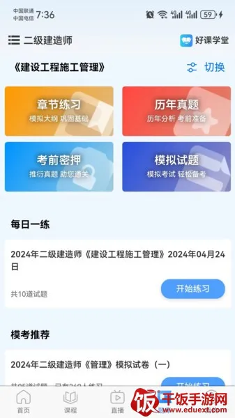 1. 丰富题库,刷题便利:拥有历年试卷、模拟考试、章节练习等丰富题库,方便用户刷题,更好地巩固知识、熟悉考试形式。