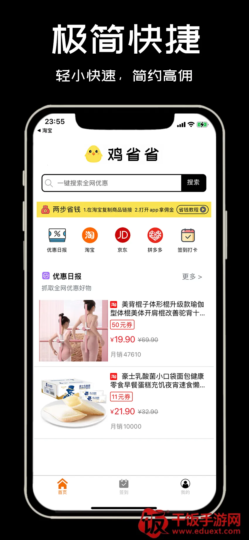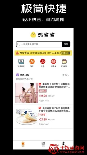 鸡省省2026官方最新版本是扬州码客教育科技有限公司推出的优惠领券购物平台,涵盖主流电商平台优惠券,还有生活服务优惠。支持多平台查询,优化了查询速度,能帮用户省钱,操作简单,提现0手续费。