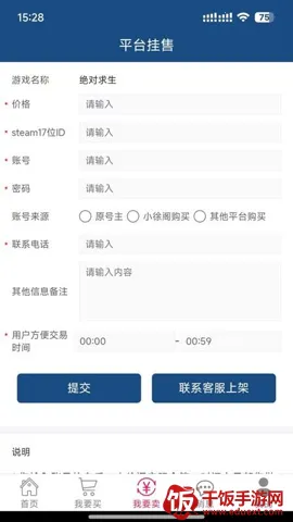 3. 丰富交易品类:支持多种热门游戏的账号和道具交易,涵盖端游与手游,满足用户多样化交易需求,轻松实现闲置账号或道具变现。