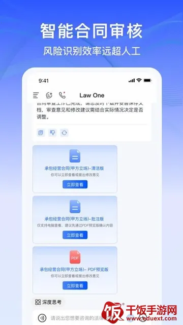 LawOne安卓免费版是款超实用的法律行业软件。它能提供一站式智能法律服务,解决各种法律问题。不管是家庭法、合同法还是劳动法等领域,都能获得专业支持。操作简单,打开应用就能找律师咨询。还有智能匹配律师功能,能根据案件诉求精准找到全国合适律师。能满足多场景咨询需求,快速帮用户解决问题,找到适合的服务方案。使用时,先确认用户协议,再浏览核心功能,按需选择。上传文件选拍摄或相册方式,申请存储权限。在首页底部输入框咨询法律问题。软件还支持定制合同,利用AI起草文书,获取全国优质律师资源,提供24小时服务随时在线咨询。更新内容不断优化,如新增类案检索模块等,真的很方便!