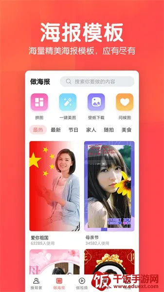 2. 模板海报丰富:拥有海量精美海报模板,涵盖节日祝福、家人随拍、美食艺术等各类场景,让祝福及时又有趣。