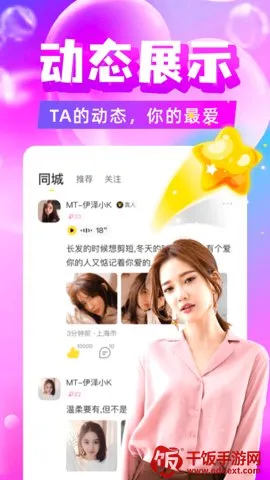 附近陌约专注交友,能记录动态心情、分享生活点滴,还可关心了解他人。它致力于打造真实可靠平台,所有用户都需真人认证,保证资料真实。会依据地理位置和兴趣爱好精准推荐附近陌生好友,方便近距离结识新朋友。不管是找爱情还是友谊,都能提供合适交友机会。有整夜畅聊不停、附近约会交友等优势,还有同城聊天一键搭讪、视频通话更真实、语音速配声声入耳等特色。在这里,你能结识到不少志同道合的人,开启有趣的社交之旅,找到属于自己的交友乐趣,收获不一样的社交体验,让交友变得轻松又愉快。