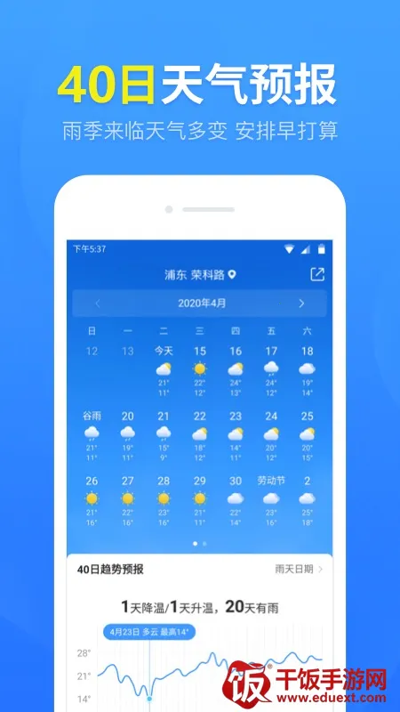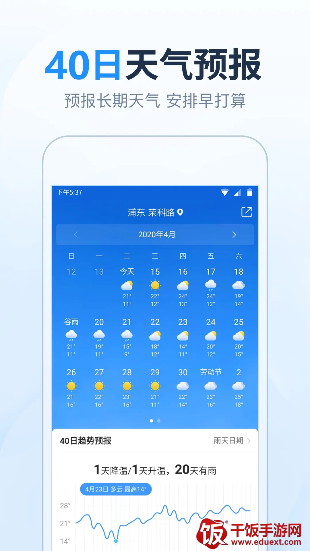 全球覆盖,方便快捷:支持全球4万个城市及乡镇天气查询,无论您身处何地,都能轻松获取当地天气,还可查看未来40天天气趋势,助您妥善安排生活。