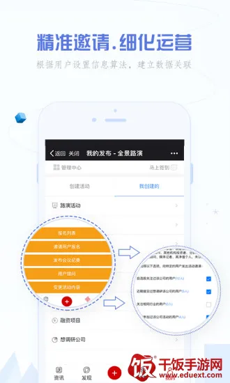 全景路演 2026 最新版本核心特色显著。它能为多角色用户搭建关系桥梁,满足多方交易需求。实名认证聚集高质量用户,多角色用户显示不同界面菜单,可灵活配置功能权限。项目需求精准对接,活动信息丰富,精准邀请高效。还能根据用户设置建立数据关联,方便查找圈内资源;每日更新圈内动态,方便阅读资讯;为圈内人士搭建沟通桥梁,提供多种互动方式;打造安全交易平台;分类检索资源,找资源不迷茫。