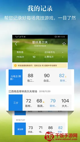 3. 能详细记录每次打球数据,胜负得分一目了然,还可轻松记录与球友的成绩等数据,提供多样高尔夫游戏玩法。