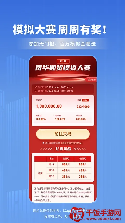 - **模拟交易**:百万模拟体验金,帮助期货入门,检验期货策略。