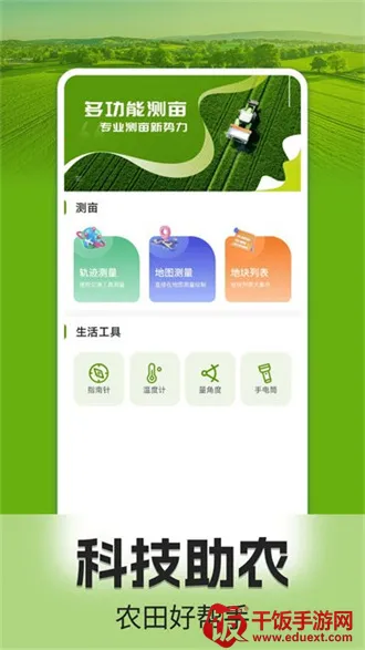 手机测亩仪是一款专为农业工作者打造的多功能应用。它集成了轨迹测量、地图测量、指南针、温度计、手电筒以及农事日记等多种实用工具,能助力农民和农业工作者更高效地管理农田,提升农业生产效率。