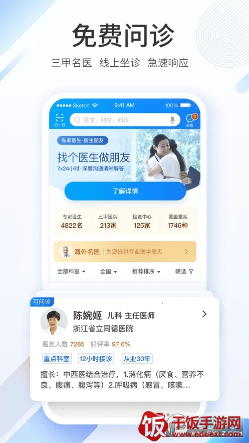 贴心随时咨询:家庭医生及专科医生实时在线咨询,7*12小时不间断服务。设有全科、内科、骨科、中医、营养等专科诊室,一对一为您提供疾病、心理等健康咨询。