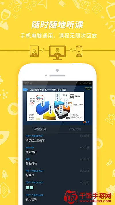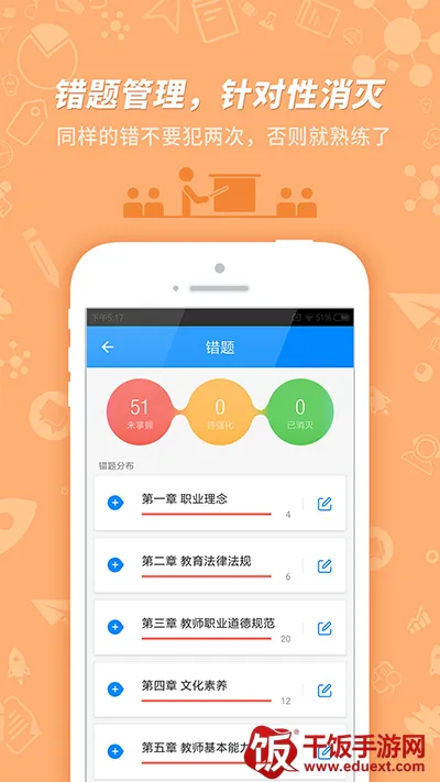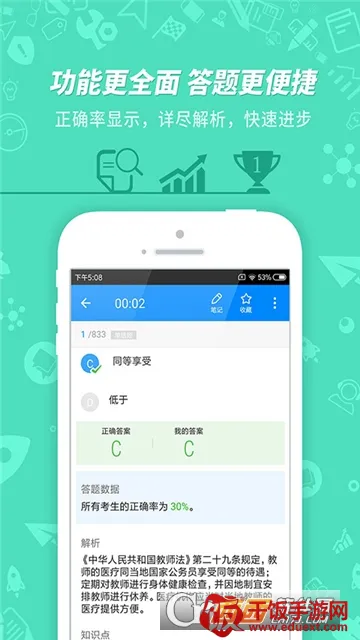 2. 强大题库支持:同步教师资格证考试大纲,含历年真题上万道,涵盖各个学段和学科科目。按知识点分类,能针对性练习,突破弱项。还有错题库分类解析重做功能,解决各类错题。