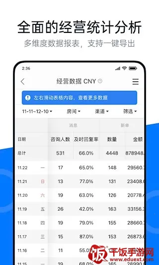 百居易软件测评:平台操作界面直观,房态管理与价格调整响应迅速,适合多房源同时操作。实际使用中批量改价与渠道同步功能稳定性较好。消息处理效率较高,智能回复准确率约80%,但仍需优化复杂语境理解。跨平台咨询聚合功能显著减少重复操作。自动化工具大幅降低人工干预需求,退房保洁分配和入住消息推送及时性获得普遍认可。支持自定义规则灵活性较强。财务统计维度丰富,RevPar与入住率数据可视化清晰,但报表导出格式兼容性可进一步增加。微店搭建流程简洁,零佣金模式实用性强,但部分模板设计风格略显单一。