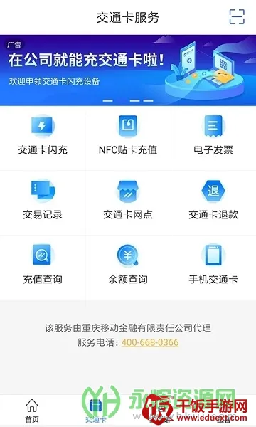 1. 充值方式多样:支持NFC功能的安卓手机用户,可通过NFC拍卡充值;不支持NFC功能的安卓与IOS系统手机用户,能通过飞充机具写卡充值。