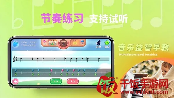 梦谱五线谱是一款超棒的音乐教育软件,能帮孩子轻松进行音乐启蒙。它操作简单,打开就能练,没有繁琐页面和复杂乐理。软件可使用模拟钢琴进行五线谱音符训练,还有很多实用功能。比如能记录练习情况,方便分析问题;提供真钢琴识别音高,连接后用键盘左边白键对应中央C就能练;有虚拟键盘方便日常练习。练习时能设置不同难度,从基础音符认知开始,逐步提升识谱速度。特效逼真,交互训练炫酷,提升学习乐趣。平台还会自动记录练习数据并统计。后续还会推出五线谱流和弦练习等新功能。无论是孩子想开启音乐学习之旅,还是成人想提升音乐能力,梦谱五线谱都能满足需求,快去官方下载体验吧。