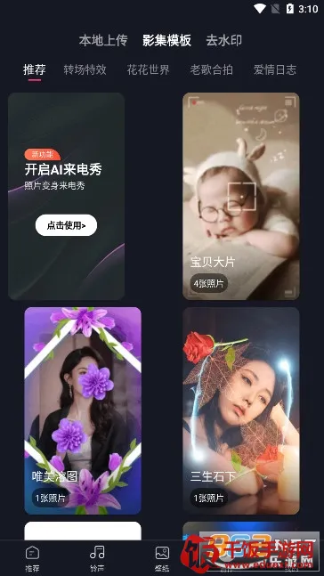 来电秀秀铃声类软件简直是手机个性化的绝佳选择!它能让你的手机来电告别单调,充满独特魅力。这里有海量丰富的铃声资源,涵盖抖音神曲、流行视频与热门音乐,完美结合超炫超酷。每天都会上线最新铃声,首家支持 3D 重力感应的来电秀资源,总能满足你的新奇需求。软件里有各种类型的来电秀,动漫、电音、明星、影视等应有尽有。操作特别便捷,能秒设来电秀,还支持给亲密联系人设置专属来电皮肤,亲密无间。多个皮肤可轮换显示来电秀,每次接电话都与众不同。能自由设置播放列表,还能定制手机的来电秀背景壁纸,支持自定义个人相片在线展现真我。让乏味的生活变得有趣,从此每天期盼着来电话,快来下载体验吧!