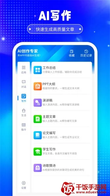 如果你正在寻找一款功能强大的智能创作工具,那铅笔AI绝对值得拥有!它集创意文案生成、智能对话、高效写作等多功能于一体。不管是写小红书文案、剧本创作还是商品好评,只要输入关键词,就能快速生成丰富的文案内容,激发你的无限创意。它还能提供高情商回复与趣味问答,陪伴你度过愉快的日常生活。在写作方面,无论是论文编写、演讲稿创作还是诗歌情诗,都能轻松搞定。而且涵盖工作、学习、生活等多个场景,满足你不同情境下的需求。使用起来也很方便,在宝贝游戏网下载安装软件,点击同意信息保护政策,进入主页就能选择想用的功能。还支持个性化定制,能根据个人喜好设置。生成的内容支持一键复制和分享,注重用户隐私保护。有了铅笔AI,创作从此变得轻松又高效!