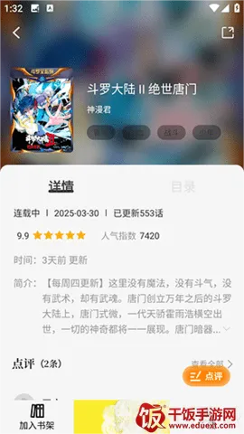 星绘屋漫画核心特色丰富多样。海量漫画资源是一大亮点,热门冷门作品一网打尽。每日新漫画上线,让用户总能发现喜爱的连载或完结之作。漫画内容分类明确,日漫、少女漫画、玄幻都市等类型清晰呈现,方便用户快速定位想看的漫画,极大提升阅读便利性,满足不同用户的追漫需求,轻松享受漫画阅读的乐趣,时刻紧跟漫画潮流。