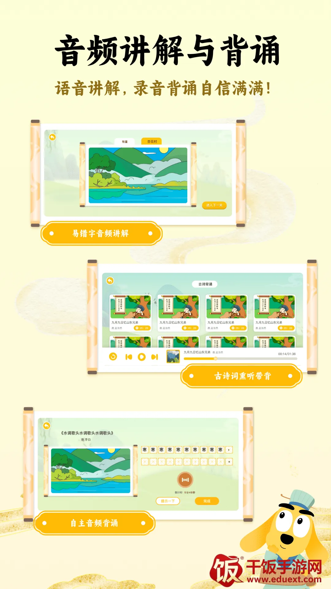 适趣古诗词app挺好用的,能满足古诗词爱好者的多种需求。它内置海量传统经典古诗词,每首都有详细解析,还有相关绘本故事,增加学习趣味性,降低难度。音频讲解功能方便不方便观看时聆听学习。