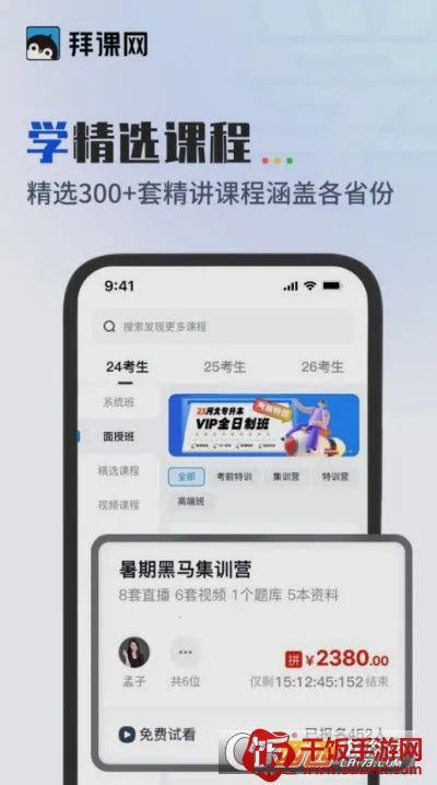 拜课网专升本是一款超棒的学习平台。它有海量题库,覆盖全国各省份专升本真题及模拟题,能让你通过实战演练提升能力。还有个性化课程,直播公开课与精选课程结合,满足不同学习需求,高效备考。智能词汇库涵盖专业词汇,用艾宾浩斯记忆法帮你轻松背单词。院校资讯详尽,提供院校数据与招生政策,助你找准目标。平台会实时更新课程、题库、直播等资料。软件亮点众多,课程学习有高清视频且支持离线下载,题库练习可错题收藏解析,还能智能推荐学习计划,互动答疑区老师和学长在线解答困惑。刷题功能全面,词库背单词实用,精品课程丰富,直播公开课干货满满,专升本大数据助力志愿填报。有了拜课网专升本,学习更方便高效,助你实现专升本梦想。